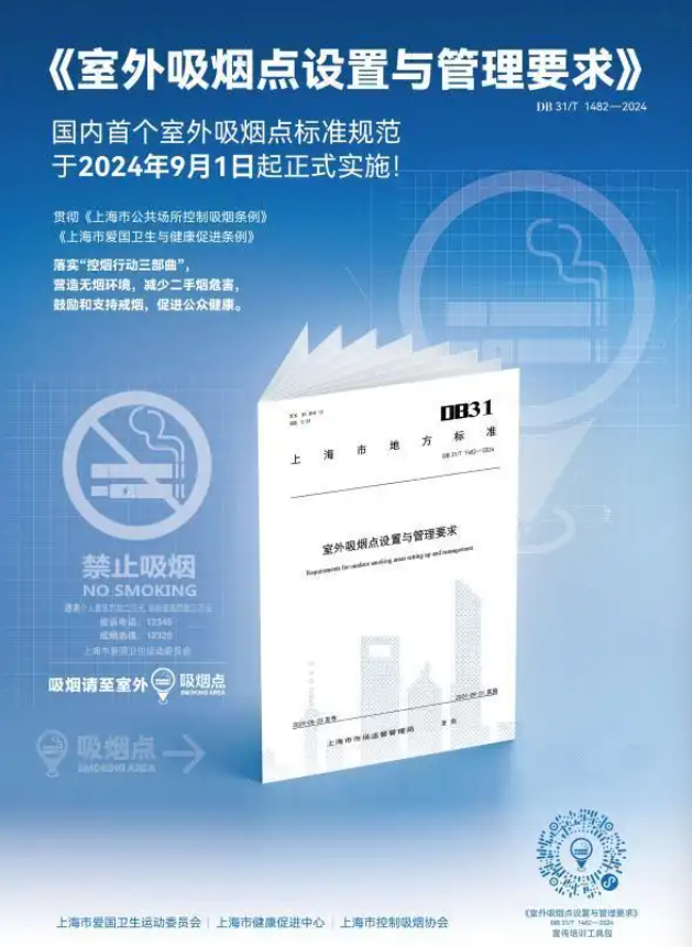 据上海市卫健委介绍,该标准是健康上海行动专项(2022-2024年)的一项重要成果,也是推进公共场所“控烟行动三部曲”,即“室内全面禁烟、室外不吸游烟、吸烟请看标识”的一项重要举措。在加强室内全面禁烟和监管执法的基础上,上海将强化室外不随处抽烟、不吸游烟的宣传倡导和疏导,吸烟应避开人群前往指定室外吸烟点。